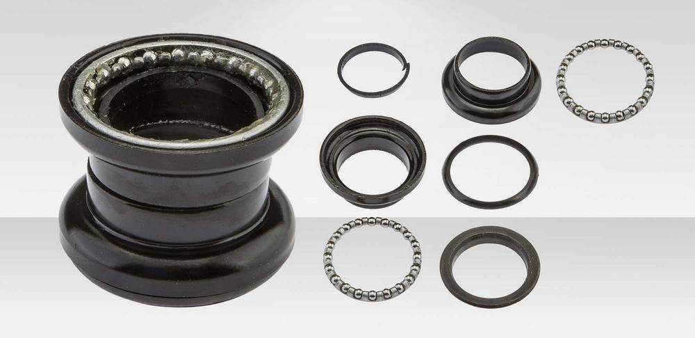 А в интегрированной колонке без резьбы абсолютно отсутствуют чашки. То есть в раме непосредственно впрессованы подшипники. Естественно, канавки качения отсутствуют. Здесь также применяются исключительно промышленные подшипники.
