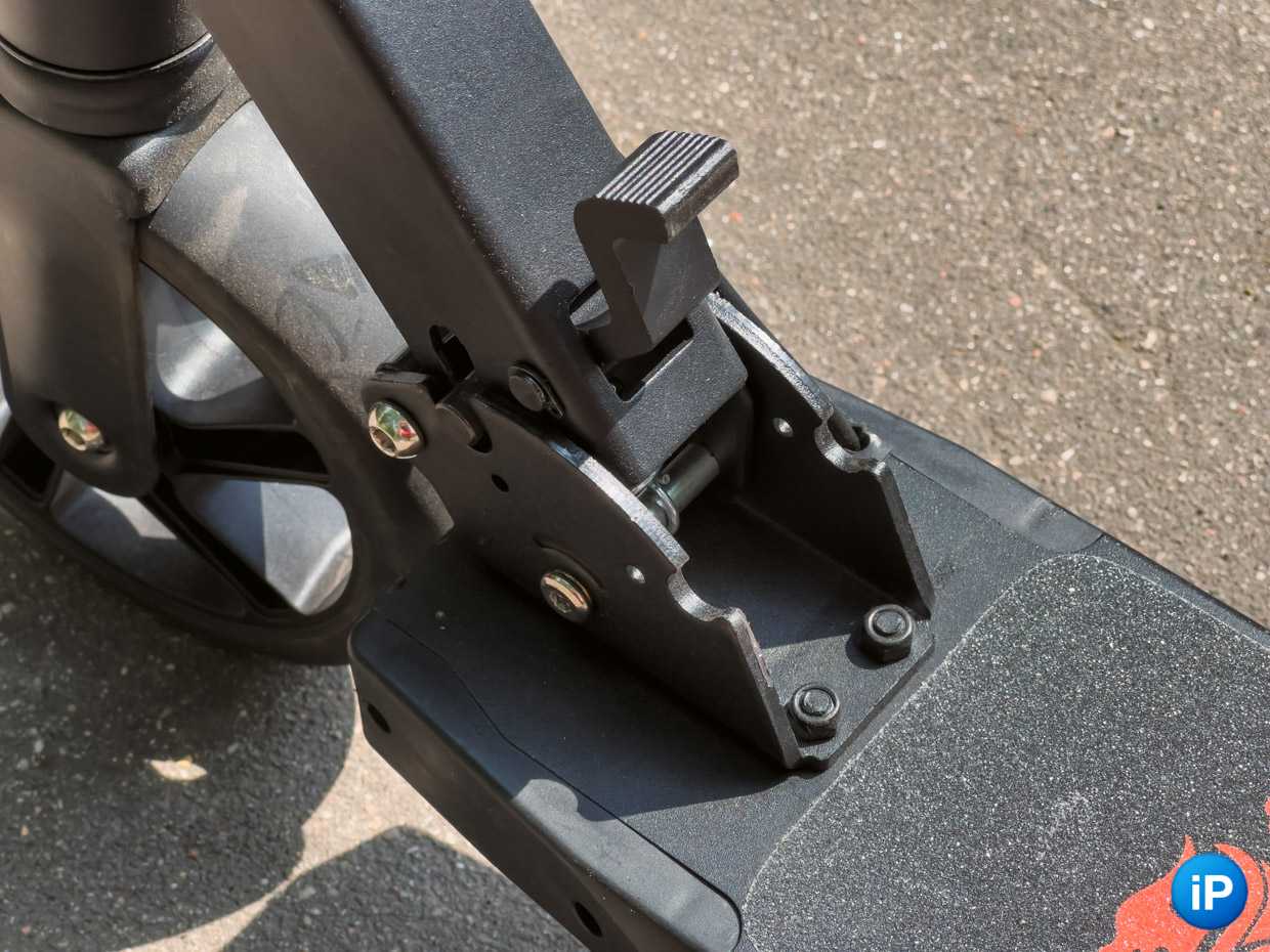 Нажимать на правую ручку рекомендуется при скорости устройства более 5 км/час. В другой ситуации она попросту не сработает. Кроме того, не следует двигать рычаг, когда электротранспорт едет рядом с пользователем или используется как обычный самокат (работает без батареи).