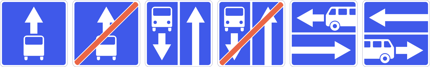 - Знаки особых предписаний: одностороннее движение, движение маршрутного транспорта.