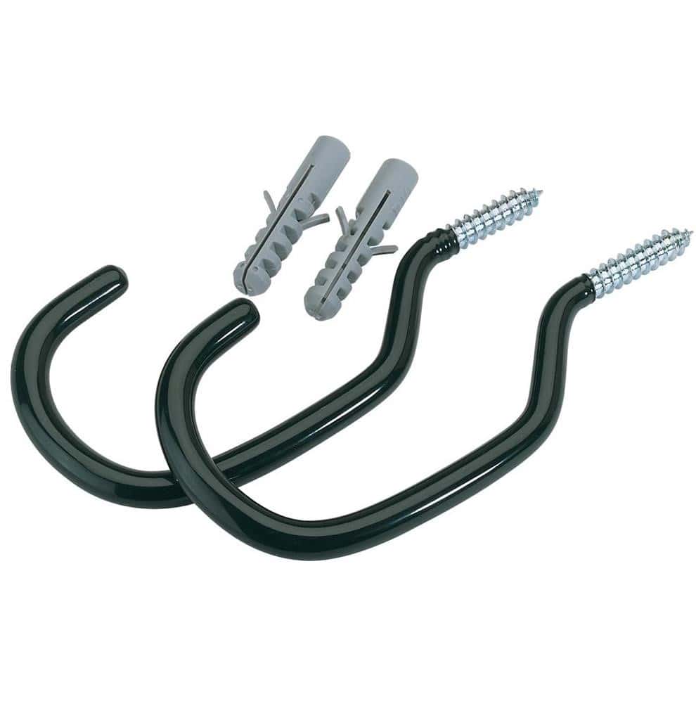 отдельный крючок в виде скобы. Для надежного хранения на стену устанавливается два крюка, а велосипед подвешивается за раму;