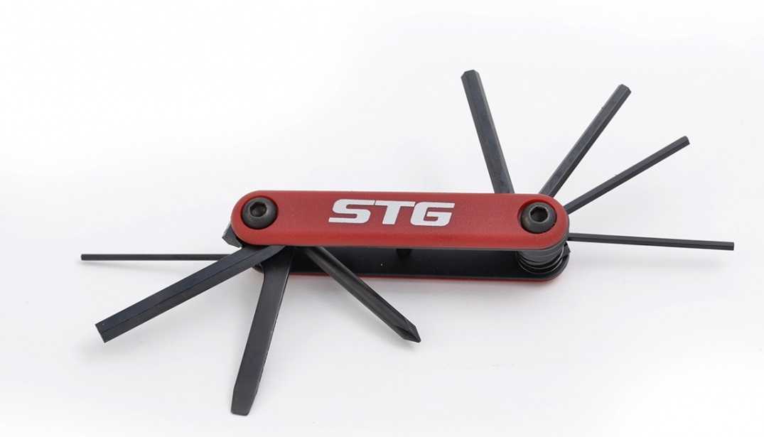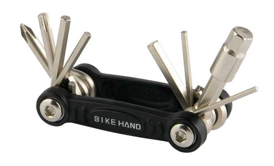 Инструменты изготовлены из хромванадиевой стали и армированного пластика. С его помощью можно выполнить 11 функций для сборки, разборки велосипеда, а также регулировку отдельных деталей. Комплект включает в себя 7 шестигранников размерами от 2 до 8 мм, крестовую отвертку и Torx ключи на Т20 и Т25.