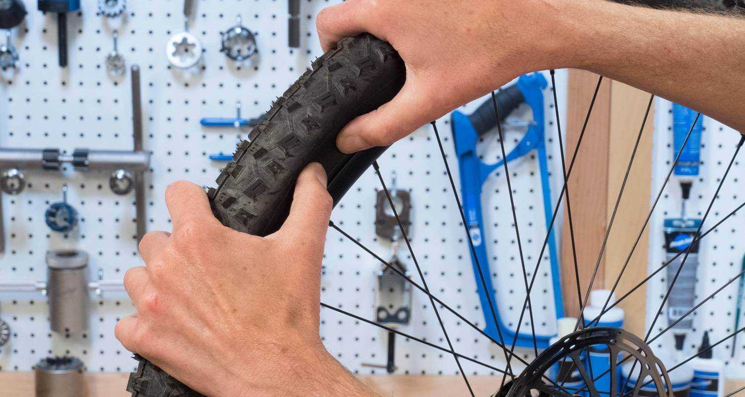 камера аккуратно распределяется по ободу; ниппель вставляется в специальное отверстие в ободе; для придания формы и чтобы избежать попадания резины между ободом и лопаткой в процессе бортировки, велокамера немного накачивается при помощи насоса; покрышка заправляется за обод, при необходимости используется монтажная лопатка; устанавливается колесо на раму, обращая внимание на правильное положение цепи; колесо крепится к велобайку болтами или эксцентриком. после проведенной замены устанавливаются в исходное положение и прочно застегиваются тормоза V-brake