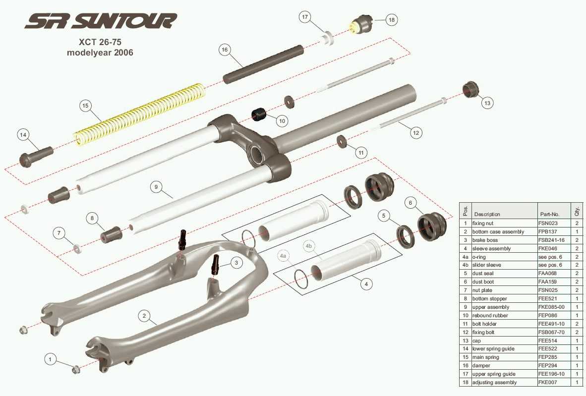 Этот процесс может быть относительно непростым — вначале стоит снять верхний пыльник пера, поддев его специальным съёмником или обычной шлицевой отвёрткой. Стопорное кольцо демонтируется при помощи пассатижей, однако нужно быть очень аккуратным, чтобы не согнуть и не надломить его. После ослабляется болт, удерживающий вилку в траверсе, в результате чего его можно будет извлечь руками. Чтобы полностью разобрать вилку, ослабьте болт крепления штока амортизатора, а затем повторите операцию со снятием пыльника и стопорного кольца пера внизу.