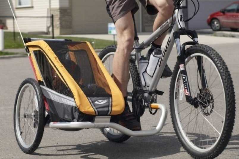 Безусловно, тележка хороша для перевозки груза. Однако при падении велосипедиста на правую сторону, ушибы достанутся и водителю, и пассажиру в коляске. Следовательно, необходимо предусмотреть жесткое и надежное ограничение поворота шарнира вправо. Видео позволит ознакомиться с практической реализацией представленной конструкции.