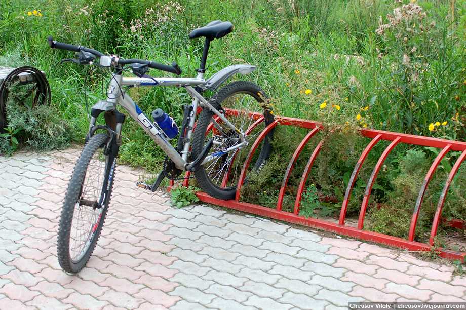 При этом конструкция не продумана, в секцию колесо помещается лишь частично, а уж пристегнуть велосипед на замок это вообще целая проблема, из-за большого расстояния от рамы до велопарковки.