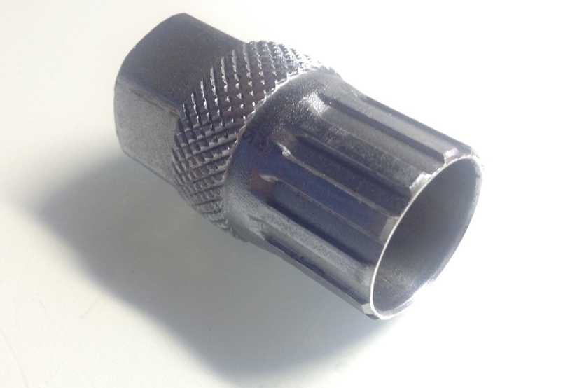 Положительным моментом для трещотки является необходимость только лишь одного инструмента для демонтажа, для этого используется такой съемник со шлицами и гранями под ключ.
