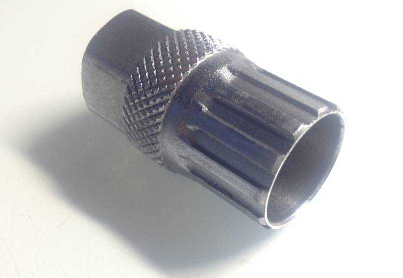 Всегда, чтобы открутить давно установленный «орех», требуется приличное усилие, которое возможно передать только с помощью подготовленных инструментов. Такими инструментами являются съемник, похожий на втулку со шлицами, и большой гаечный ключ.