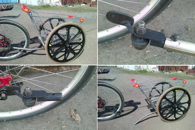 В основном, дополнительные вспомогательные устройства закрепляются к задней раме велосипеда и применяются для перевозки каких-либо небольших грузов, личных вещей, даже малых детей в специально оборудованных перевозных домах. Тележка для велосипеда становится обязательным устройством к самому велосипеду.