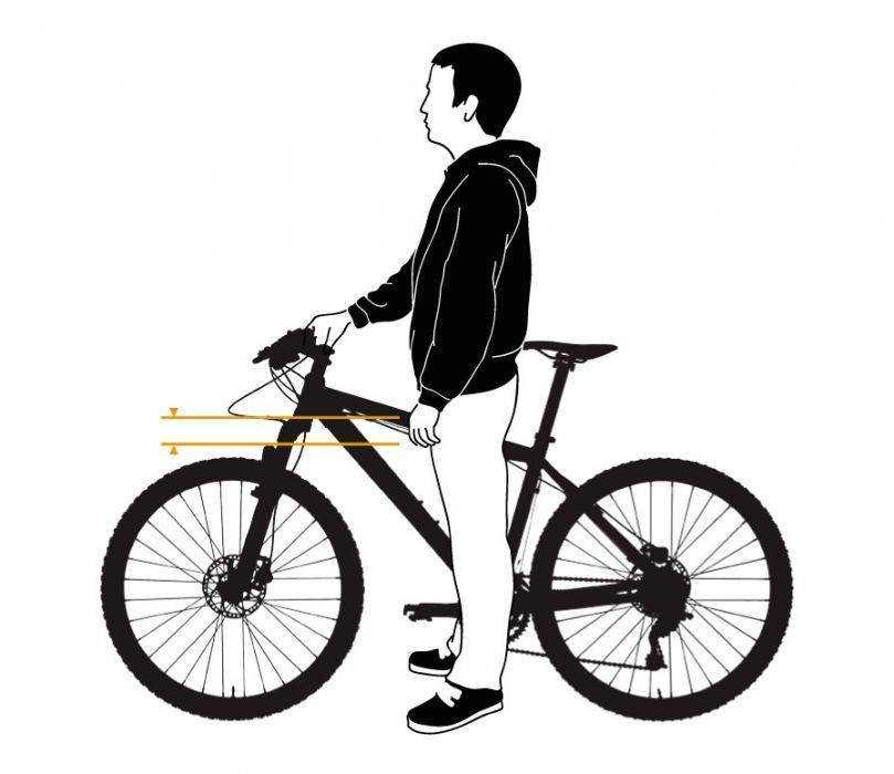 Если это расстояние меньше, вы рискуете травмироваться, когда вам придется экстренно спрыгнуть с велосипеда или, к примеру, ваши ноги сорвутся с педалей. Если в этом положении вы касаетесь рамы, то велосипед вам точно не подходит, попробуйте выбрать меньший размер.