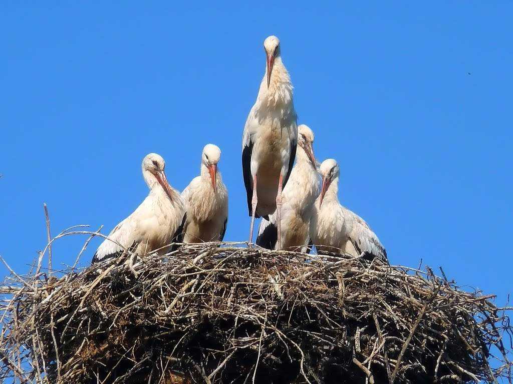 Конечно, самцу приходится отстаивать права на свои владения, порой на него покушаются более молодые особи, которые не желают тратить силы на постройку собственного жилища. Примечательно, что мелких птиц, например, воробьев и скворцов, аисты не выгоняют, и те располагаются прямо в стенках гнезда аиста.