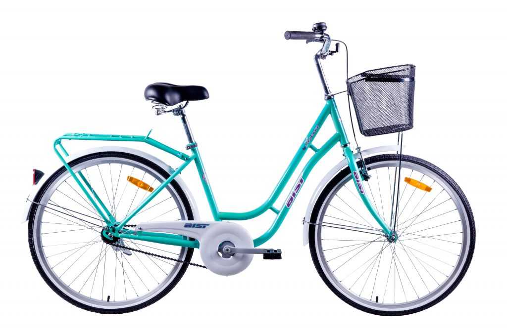 Дополнительно на велосипед установлены корзина и багажник, что соответствует женским требованиям, когда необходимо перевезти ручную кладь. Колеса защищены крыльями, а цепь имеет дополнительную защиту. Удобная подножка обеспечивает устойчивое положение транспортного средства на велопарковке.