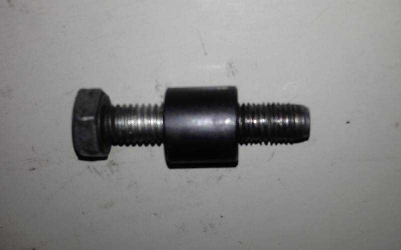 Я прижимаю съемник к каретке с помощью болта M8, такие же болты используются для крепления шатунов к валу каретки, только нам потребуется болт немного длиннее. А также проставочную трубку, которую я взял от старой втулки, чтобы не так долго закручивать болт в каретку (можно просто подобрать болт чуть короче, чтобы обойтись без проставок). Вот как это выглядит: