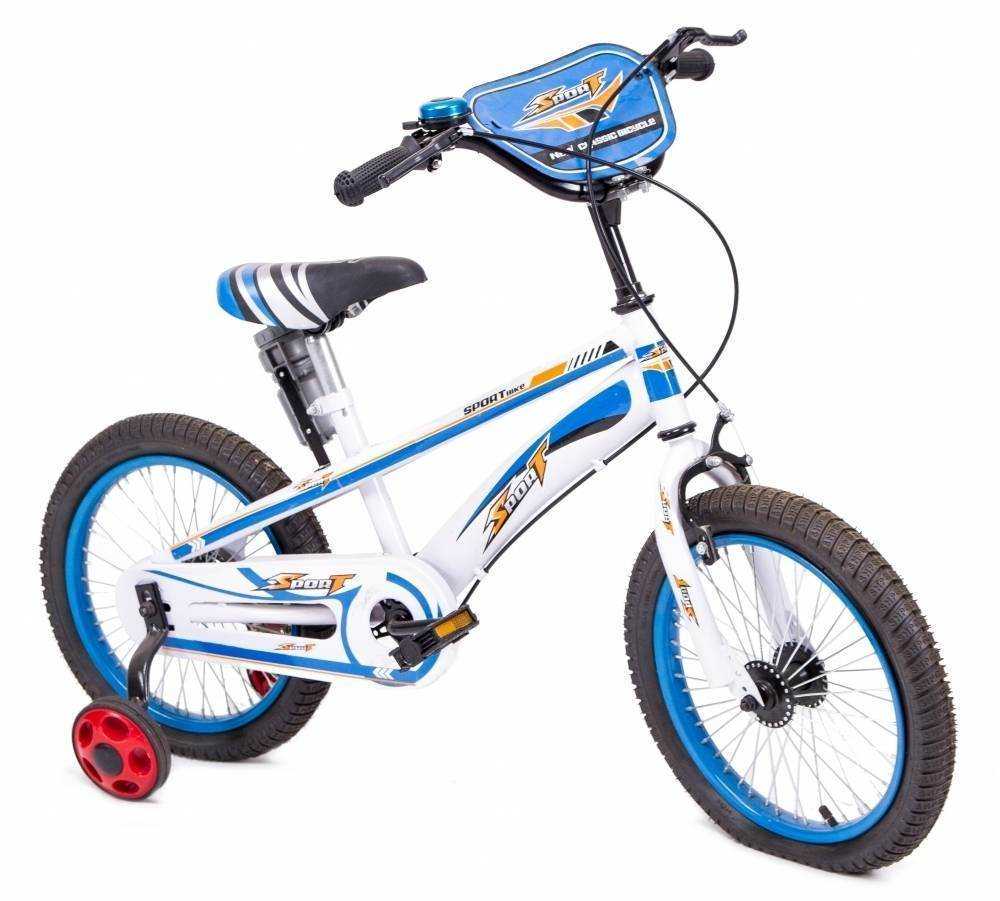 Байк с цепным приводом разработан для детей от 4 до 6 лет. Вес устройства составляет 9,7 кг, материал рамы и обода – сплав из алюминия. Размер колес – 16 дюймов. Торможение осуществляется за счет переднего прогулочного V-Brake тормоза. Аппарат рассчитан на рост до 125 см, поэтому есть возможность подъема руля. Для контроля равновесия можно установить боковые колесики, входящие в комплект.