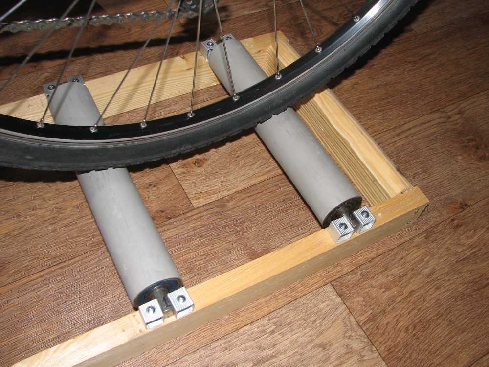 - Вот, в принципе и все – подставка готова. Торцы втулки помещаются на рейки-держатели. Колесо при этом не касается земли, а велосипед находится в устойчивом положении.