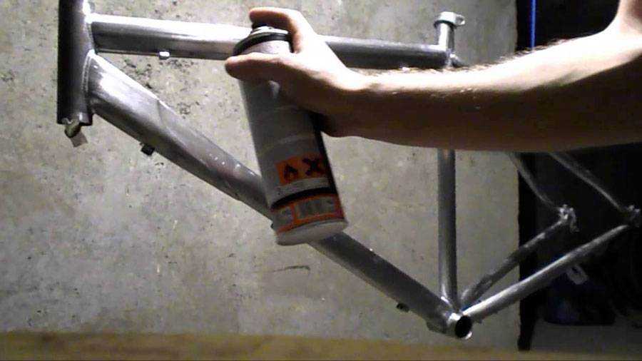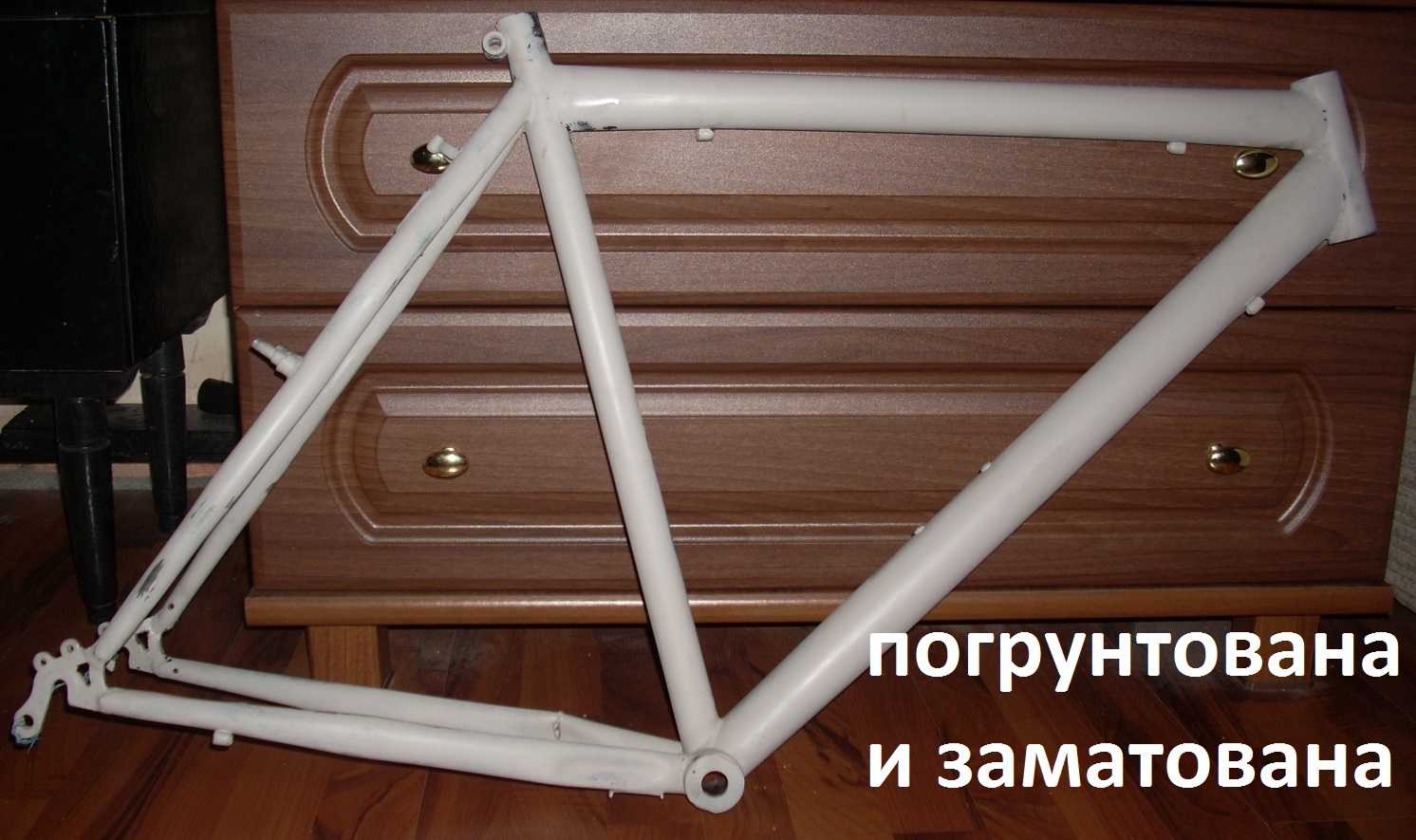 Идеально очищенную и обезжиренную раму загрунтовывают: грунт наносится тонким слоем на всю поверхность по 3-4 раза с 20-минутными промежутками между грунтованием.