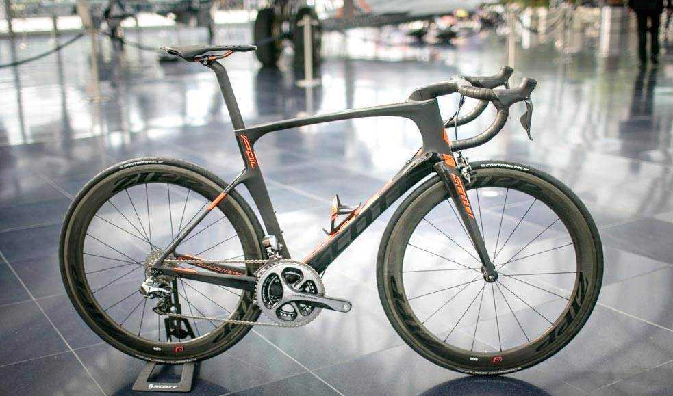 Швейцарский аэродинамичный велосипед Scott Foil оснастили 11-ступенчатой трансмиссией Shimano Dura-Ace Di2, без которой невозможно представить ни один современный профессиональный скоростной байк, а также колёсами Dura-Ace, и современным рулём PRO Vibe. Рама, созданная для наибольшего аэродинамического эффекта, была сделана максимально лёгкой. Также, по словам инженеров швейцарской компании Scott, им удалось видоизменить геометрию нижней трубы и точку соединения подседельных стоек.