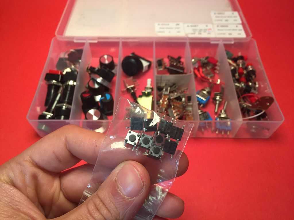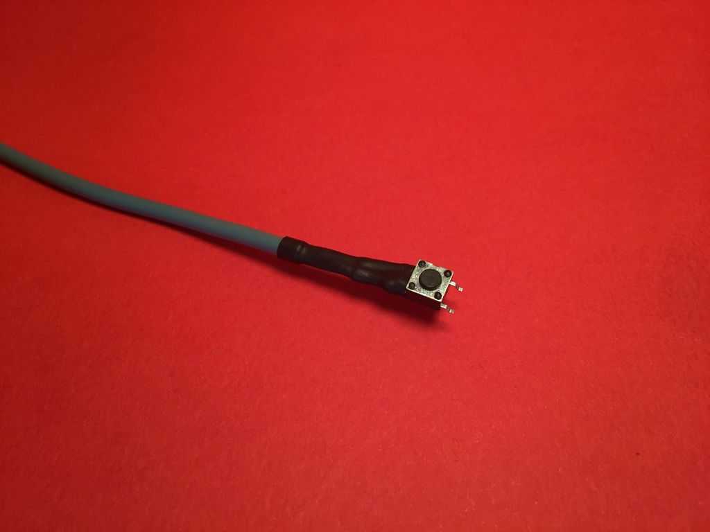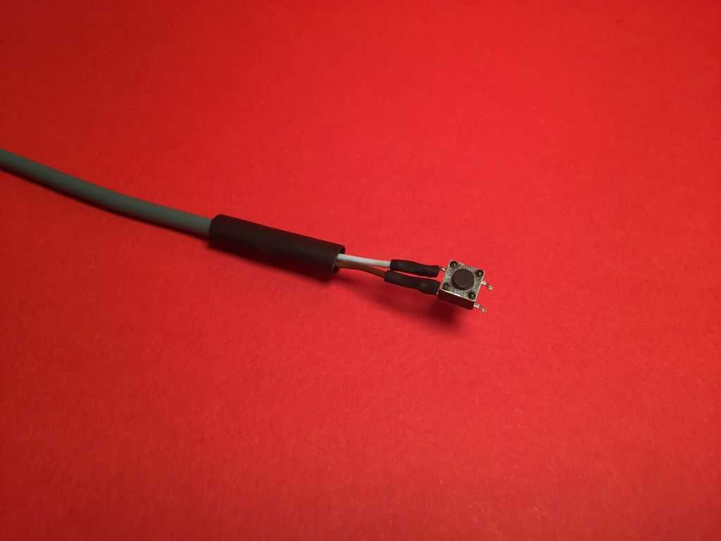 Я поискал в своей коробке с кнопками, выбрал маленькую кнопку с самовозвратом и припаял к ней двухжильный провод. Такие кнопки продаются дешевыми наборами по 50 штук, еще можно снять их со старых неиспользуемых электроприборов. Теперь вам нужно отрезать кусок провода правильной длины.