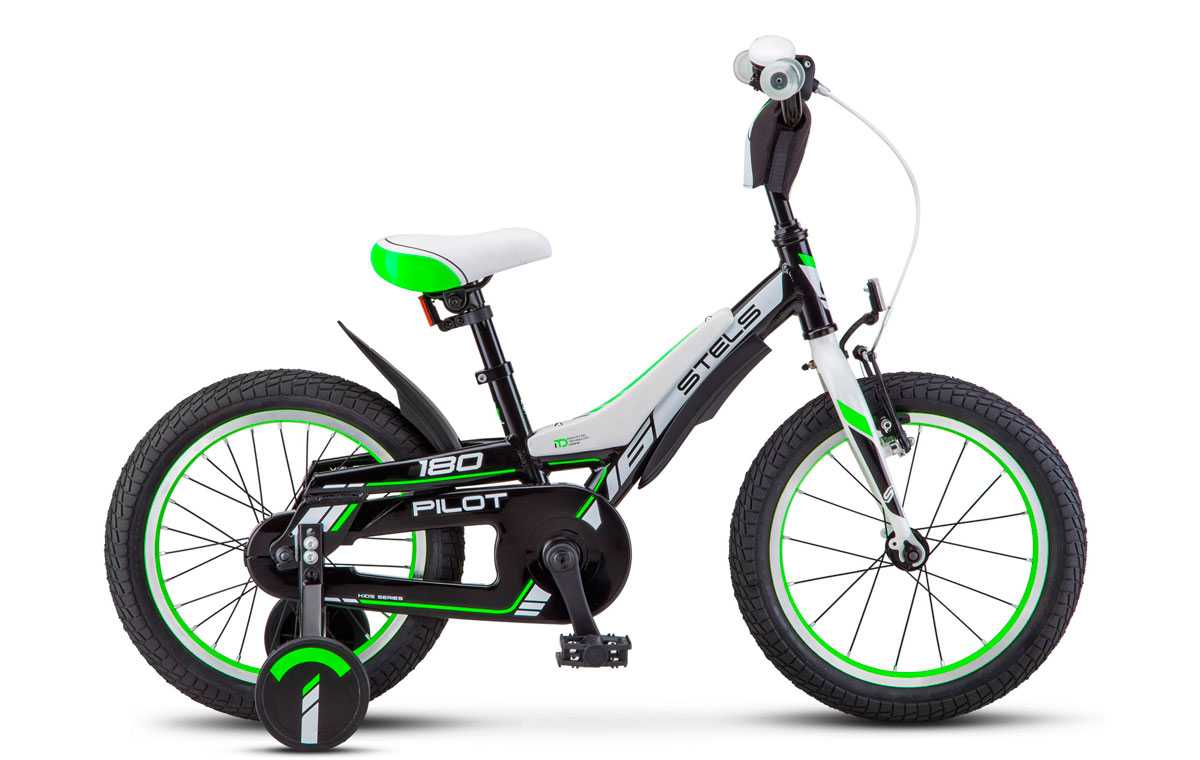 В линейку Stels Pilot входит всего несколько детских моделей (серия «1ХХ»), предназначенных как для мальчиков, так и для девочек (в зависимости от расцветки), которые уже по умолчанию снабжаются дополнительными боковыми колесиками, облегчающими процесс обучения азам катания на двухколесном транспорте.