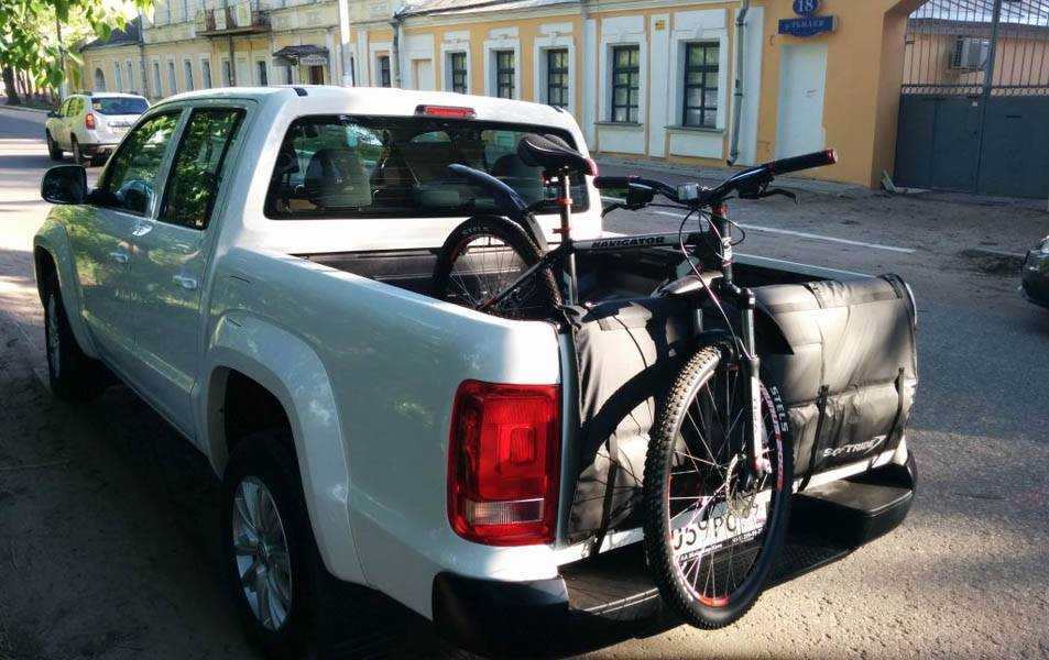 Владельцы таких авто совершенно могут не заботиться о способах транспортировки. Особенно это удобно при перевозке нескольких велосипедов одновременно. Веломашины просто помещаются в кузов, задними колёсами к салону. Передние колёса должны свешиваться из кузова, а руль нужно немного развернуть. Те, кто часто совершают такие транспортировки, советуют взять старые шины и вставить их между перевозимыми велосипедами, а затем всю эту конструкцию прочно скрепить ремнями. Таким образом, мы уменьшим возможность повреждения перевозимых байков друг о друга, особенно на плохой дороге или при совершении резких маневров.