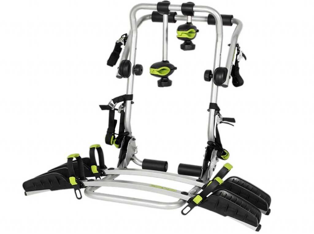 Крепление для транспортировки на 5й двери, устанавливается при помощи 6-ти прочных ремней. Главные верхние тросы снабжены функцией самостоятельного натяжения, установка проста и доступна даже для неопытных покупателей. Стоит учитывать, что при полной загрузке, доступ к багажному отсеку усложняется. Изготовлен в Италии, веси 4.2 кг., грузоподъемность равна 45 кг., мест под велосипеды 3.