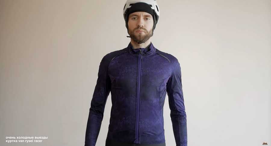 Защита тела – один из самых важных пунктов. На термобельё я надеваю велокуртку Van Rysel Racer, она подходит для межсезонья. Это куртка «переходного периода», когда в осенней одежде уже холодно, а в зимней ещё слишком жарко.