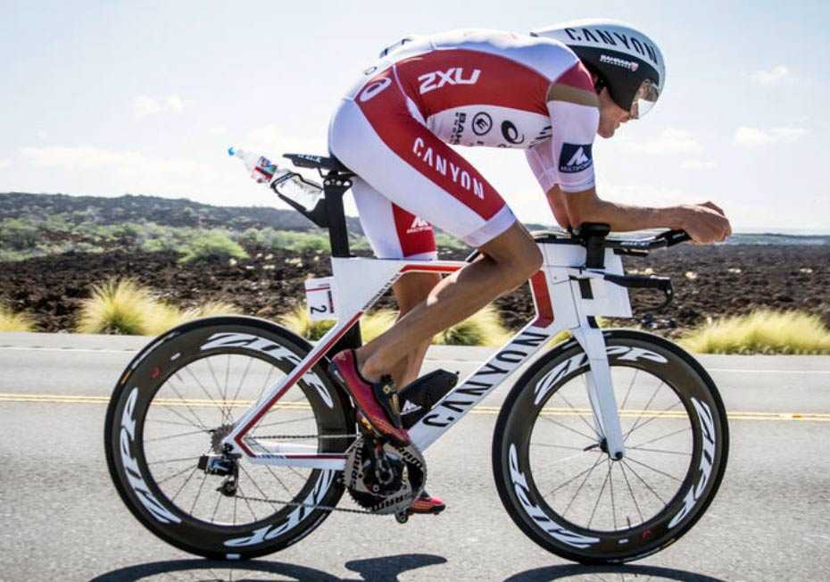 В гонка состоит из 3-х последовательных этапов (плавание, велосипед, бег) и чтобы не загружать мышцы, которые понадобятся потом для бега, правильная триатлонная посадка имеет свои нюансы. Шипы на велотуфлях ставятся несколько ближе к пятке, благодаря чему не забиваются икроножные мышцы. Также седло смещается вперёд, что ослабляет нагрузку на квадрицепсы и включает мышцы ягодиц и задней поверхности бедра. Ну и конечно используется аэробар (лежак на руле), выставленный таким образом, чтобы плечи находились под углом 90 градусов к телу (иначе мышцы плеча быстро устают).