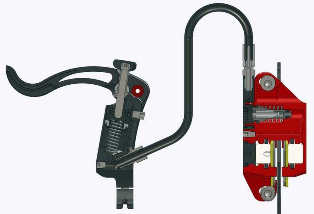 - Дисковые гидравлические. Наиболее эффективный и профессиональный тип тормозов, т.к. обеспечивают максимальную эффективность торможения. Ручка такого тормоза наживается легко и «не отвлекает» от управления велосипедом. Из минусов стоит отметить высокую стоимость и сложность устранения неполадок в «полевых» условиях.