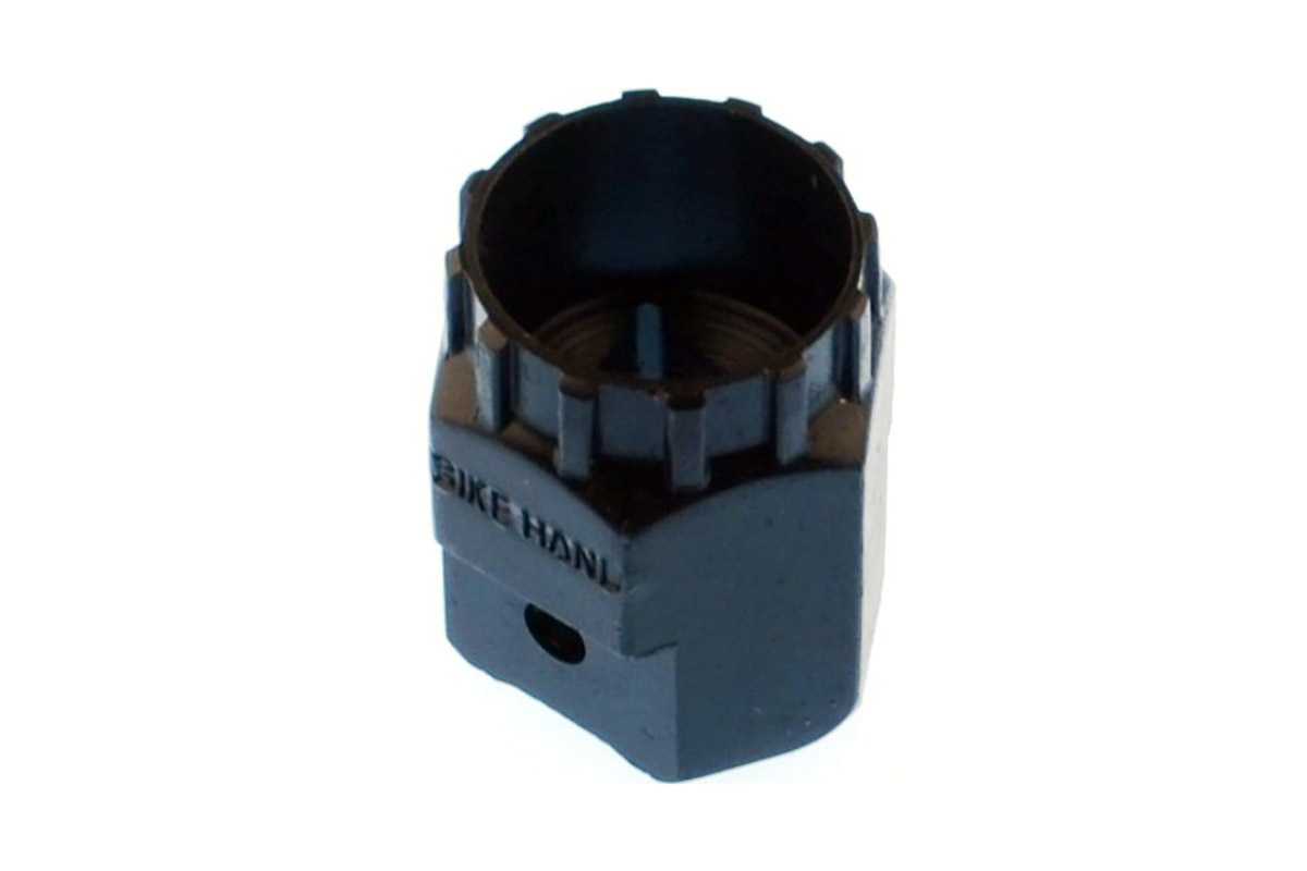 - Съёмник для снятия трещотки и кассеты. Хотя эти инструменты похожи, они не взаимозаменяемы. Съёмник для трещотки недостаточно плотно входит в гайку, которая фиксирует кассету, поэтому высок риск сорвать шлицы, а вариант для кассеты немного больше диаметром и не подходит для трещотки.