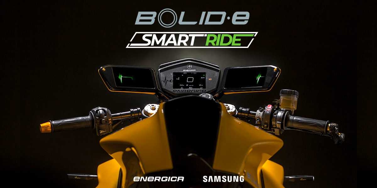 Energica демонстрирует свой самый умный электрический мотоцикл Bolid-E. Проект был разработан совместно с Samsung для демонстрации футуристического мотоцикла