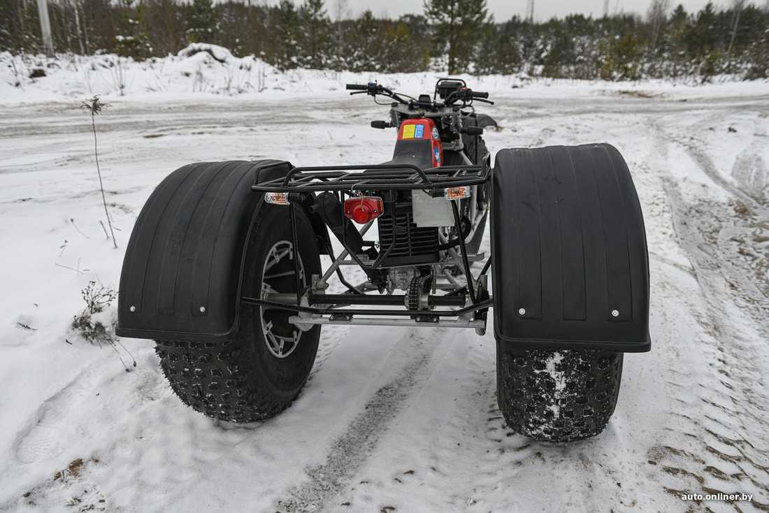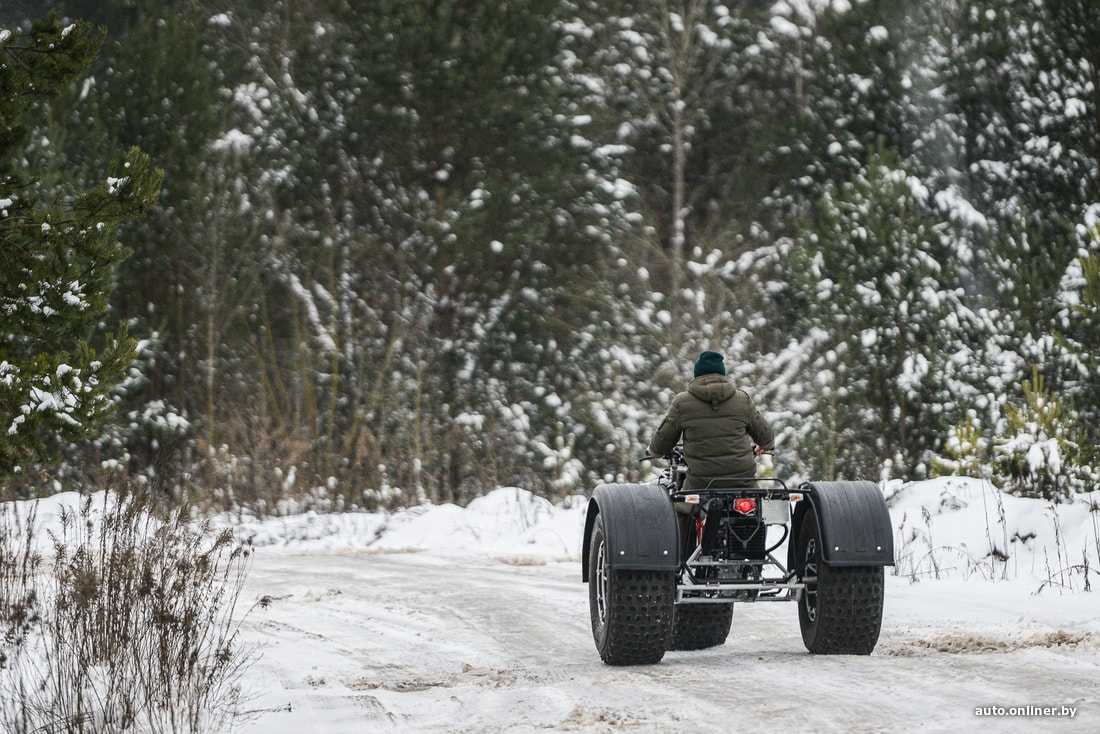 Едет «Бархан» откровенно медленно, но это и хорошо. На высоких скоростях 3-колесный вездеход ощущался бы нестабильным и был бы не прочь перевернуться. Все же по устойчивости модель далека от квадроциклов. Зато «Бархан» выигрывает как у «квадриков», так и у снегоходов по проходимости и универсальности. Особенно если речь идет о болотистой местности. Вездеход способен перевозить на себе до 150 кг груза и тащить прицеп массой до 200 кг.