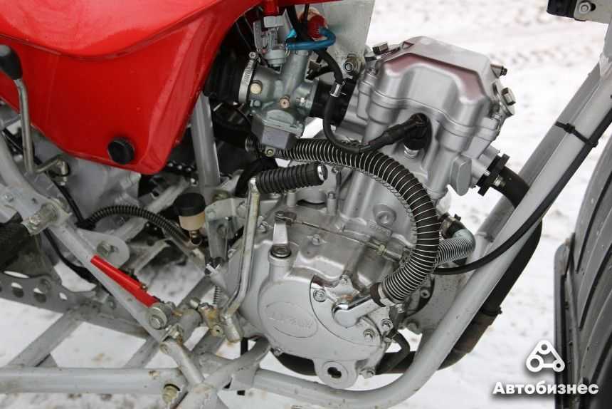 Передачи переключаются четко, приноровиться можно буквально за пару минут, даже если до этого вы ездили на мотоциклах полтора раза за всю жизнь. На приборной панели есть индикатор нейтральной передачи, а сами ступени придется считать в уме. Трогается «Бархан» бодро, но тяга быстро спадает, и мотор просит «скормить» ему вторую передачу. На пятой комфортно ехать со скоростью 20—25 км/ч. Ближе к 30 км/ч обороты слишком высокие, вибрация ощутимо передается на руль. Ездить лучше в перчатках.