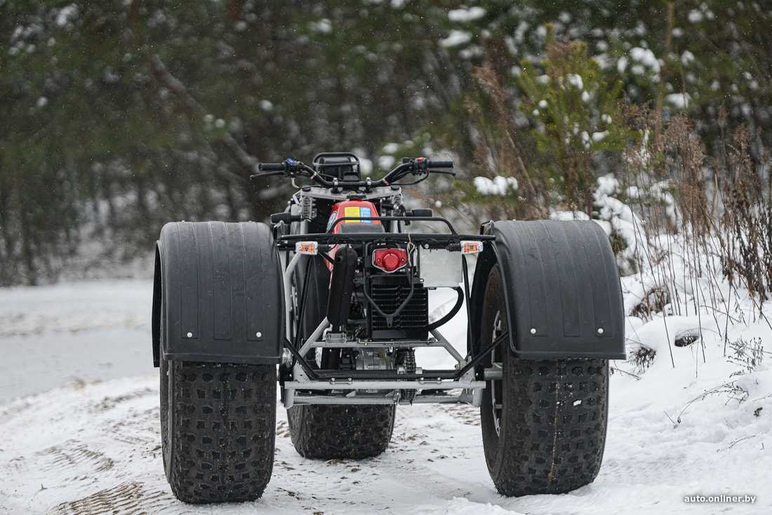 Чтобы получить трехколесный мотовездеход «Бархан», нам понадобится корпус от мотоцикла, 200-кубовый мотор Lifan 163ML-2, три огромных колеса на шинах низкого давления и смекалка, чтобы соединить все это в один аппарат.