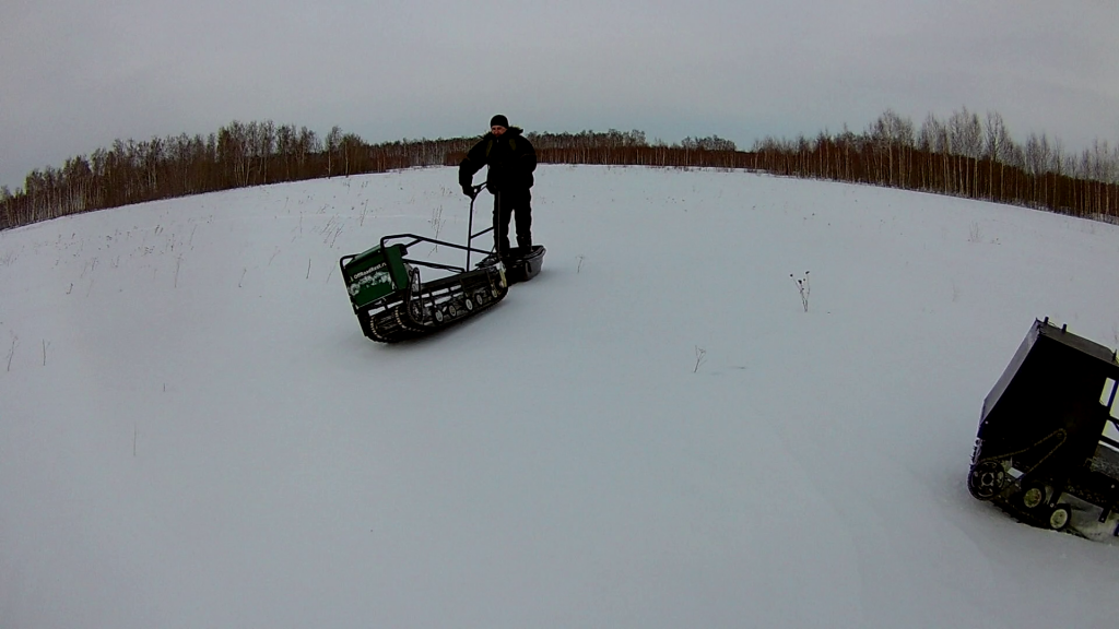 Но обычно он вообще не проваливается, и тут уже потяжелее; приходится прикладывать некоторые усилия, чтобы его немного завалить. Пытаться повернуть как-то по-другому еще сложнее. Но все это касается лишь относительно крутых поворотов; на открытой же местности, где нужно лишь подруливать, длинный мотобуксировщик в управлении не сложнее обычного.